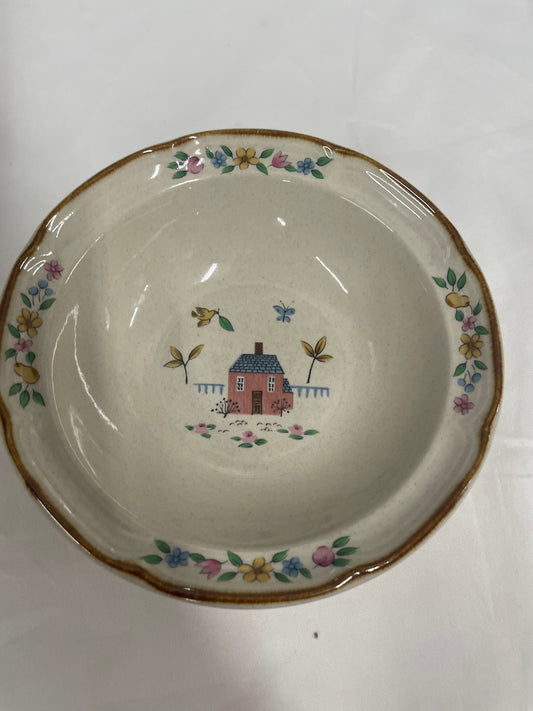 International Heartland Stoneware China Bowl Set. White Ceramic set with colorful designs.