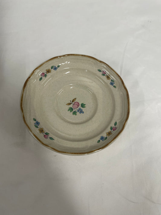 International Heartland Stoneware China Plate Set. White Ceramic set with colorful design.