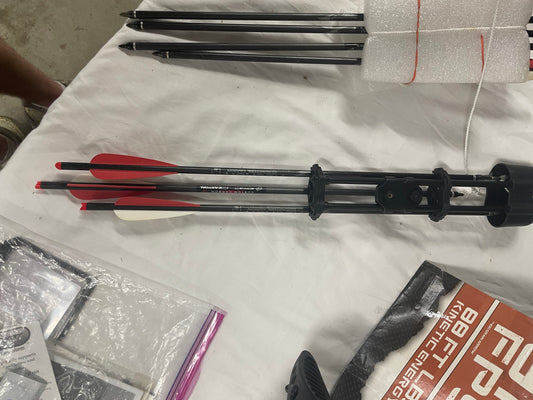 Barnett Jackal Crossbow with Arrows and Target. Crossbow is 315 FPS 88ft. Lbs. kinetic energy. 150 Draw Weight. 12” power strike. Barnett Easton Carbon Arrows. Comes with 7 arrows. Buck Commander. Barely used. 5169865