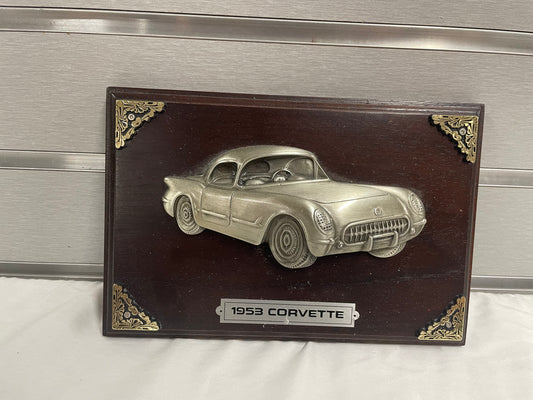 1953 Die Cast Corvette with Plaque. White Corvette, convertible top comes off 1:24 Scale.