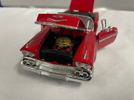 1958 Chevrolet Impala Diecast Model Car. 1:25 Scale car. Metal car. Impala is red and a convertible