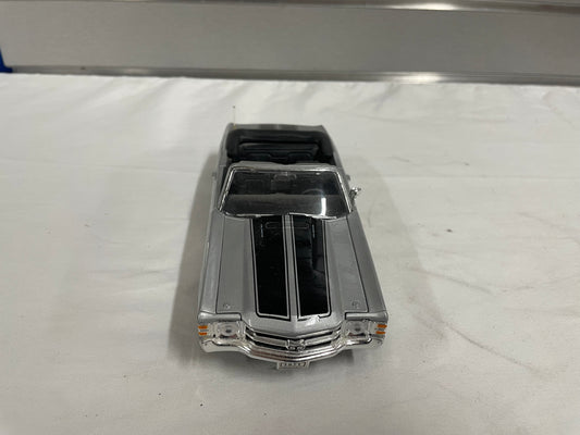 1971 Chevrolet Chevelle SS 454 Diecast model car by Welly. Gray convertible w Black stripe. 1:24 scale model.