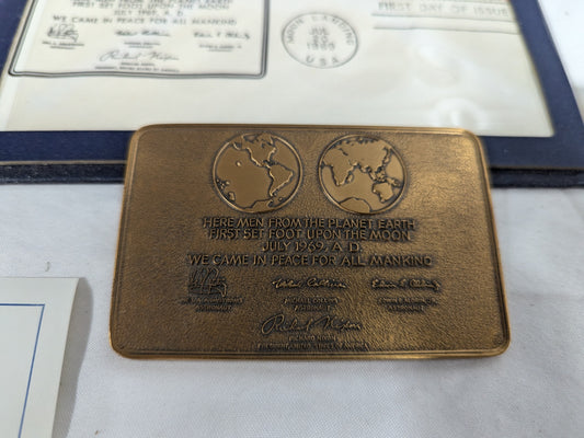 1969 Apollo 11 commemorative plaque and coin collection first day cover and metal