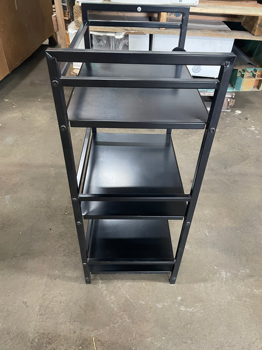 Black Multipurpose Shelf. Metal. 3 shelves. 28inches tall, 17in wide, 11.5in long.