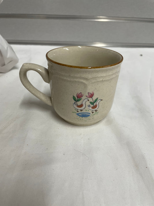 8 Piece China Cups. White coffee cups with farm designs