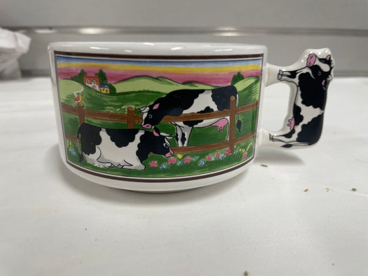 Cow Mug Soup dishes. 2 pieces. Cow handle. White dishes.