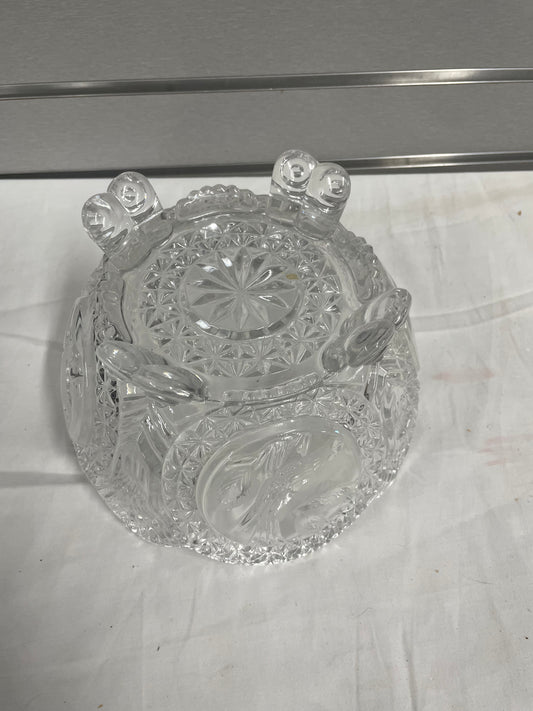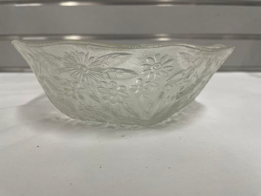 Small Detailed Glass Bowl. 7.5”x2.5”. Flower details.