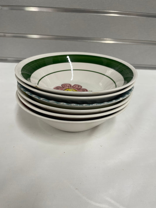 Set of 6 ceramic flower bowls. 3 different flower designs. 7x2”
