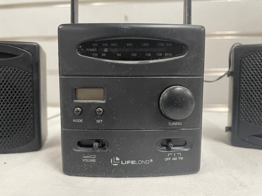 Lifelong Am/Fm Radio LCD Clock. Comes with two speakers attached. Item #8157.