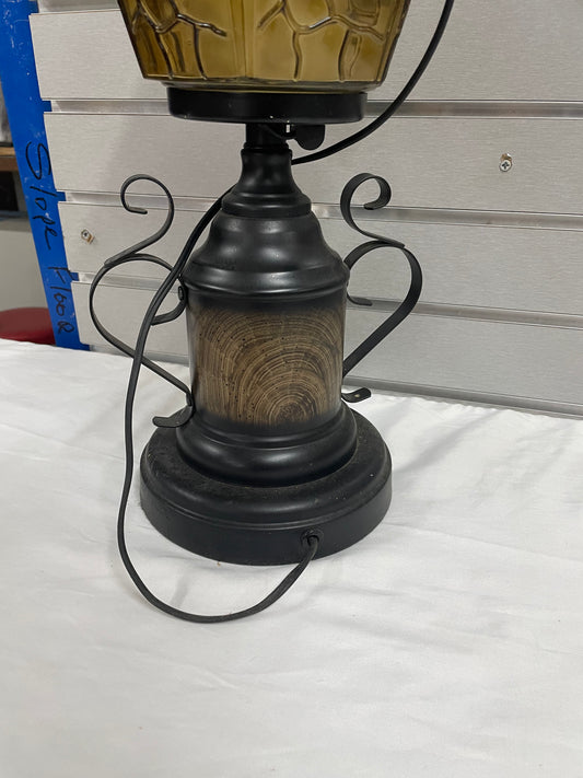 Black Metal Lantern Design Lamp. Glass Lamps is 35” tall and 8” wide.