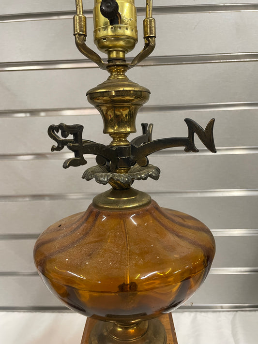 Hold Wooden Glass Lamp Set. Lantern design in the middle made of glass. Weather Vane attached to middle of lamps.