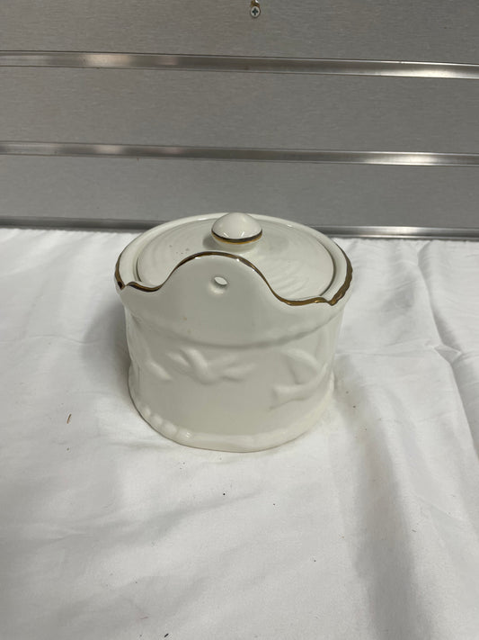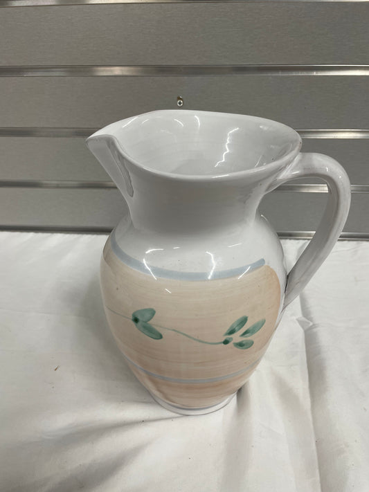 Old White Ceramic Pitcher. Pitcher is hand painted with flowers on sides